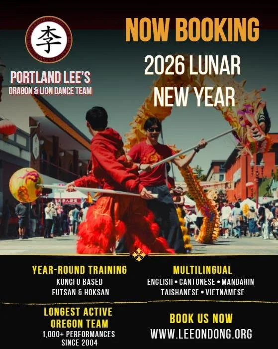 The Portland Lee’s Association Dragon & Lion Dance Team is busy preparing for 2026 Year of the Fire Horse. Our schedule is filling up quickly but we still have some limited availability for New Year performances, please submit inquiries through our Contact us page or call/text 503-253-2482.
